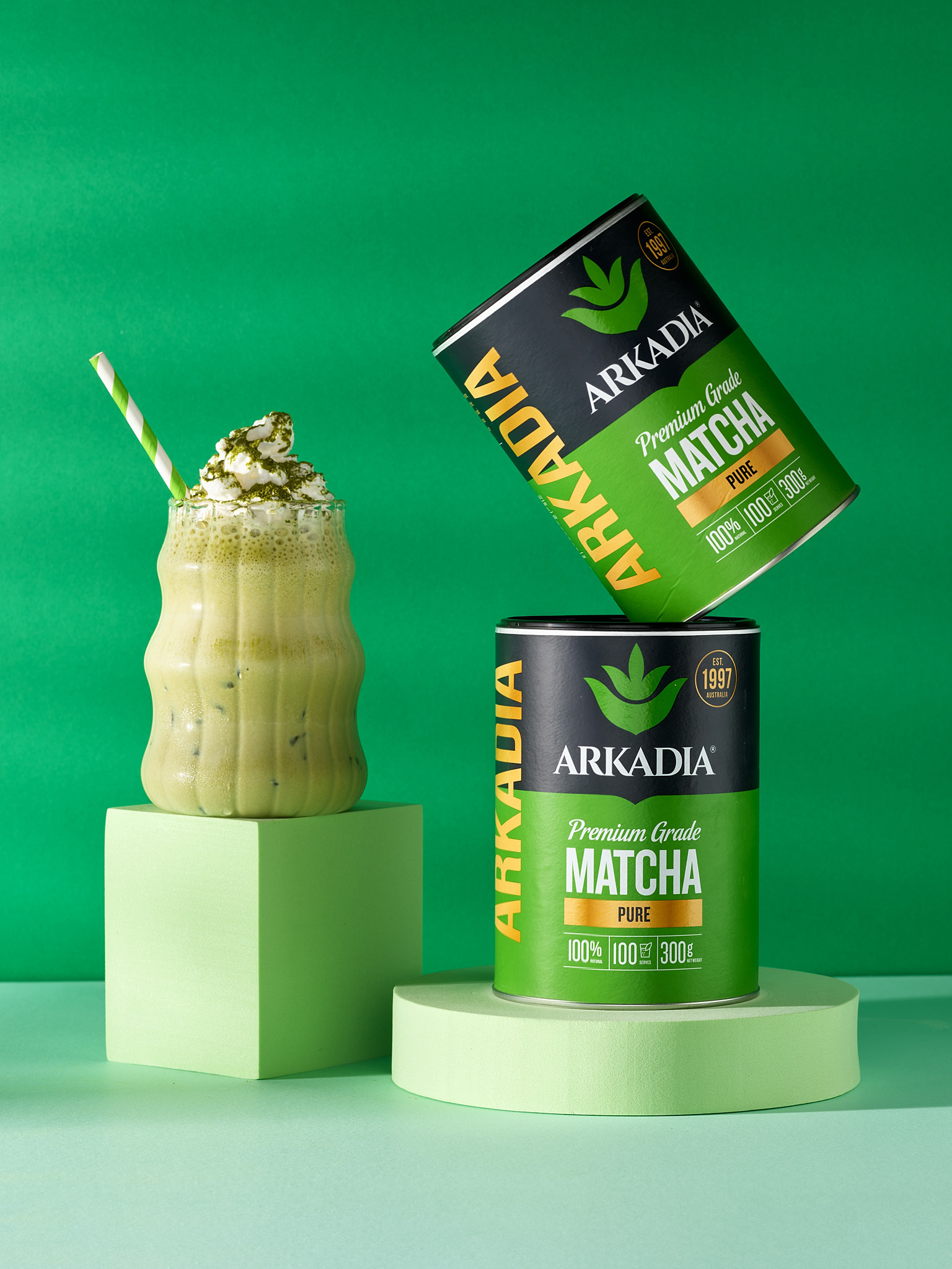 Discover pure, authentic matcha with Arkadia Premium Grade Matcha Pure — a refined blend crafted from first and second harvest tea leaves for a beautifully balanced umami profile. With layered aromas, vibrant colour, and a naturally smooth finish, this premium-grade matcha elevates every cup.